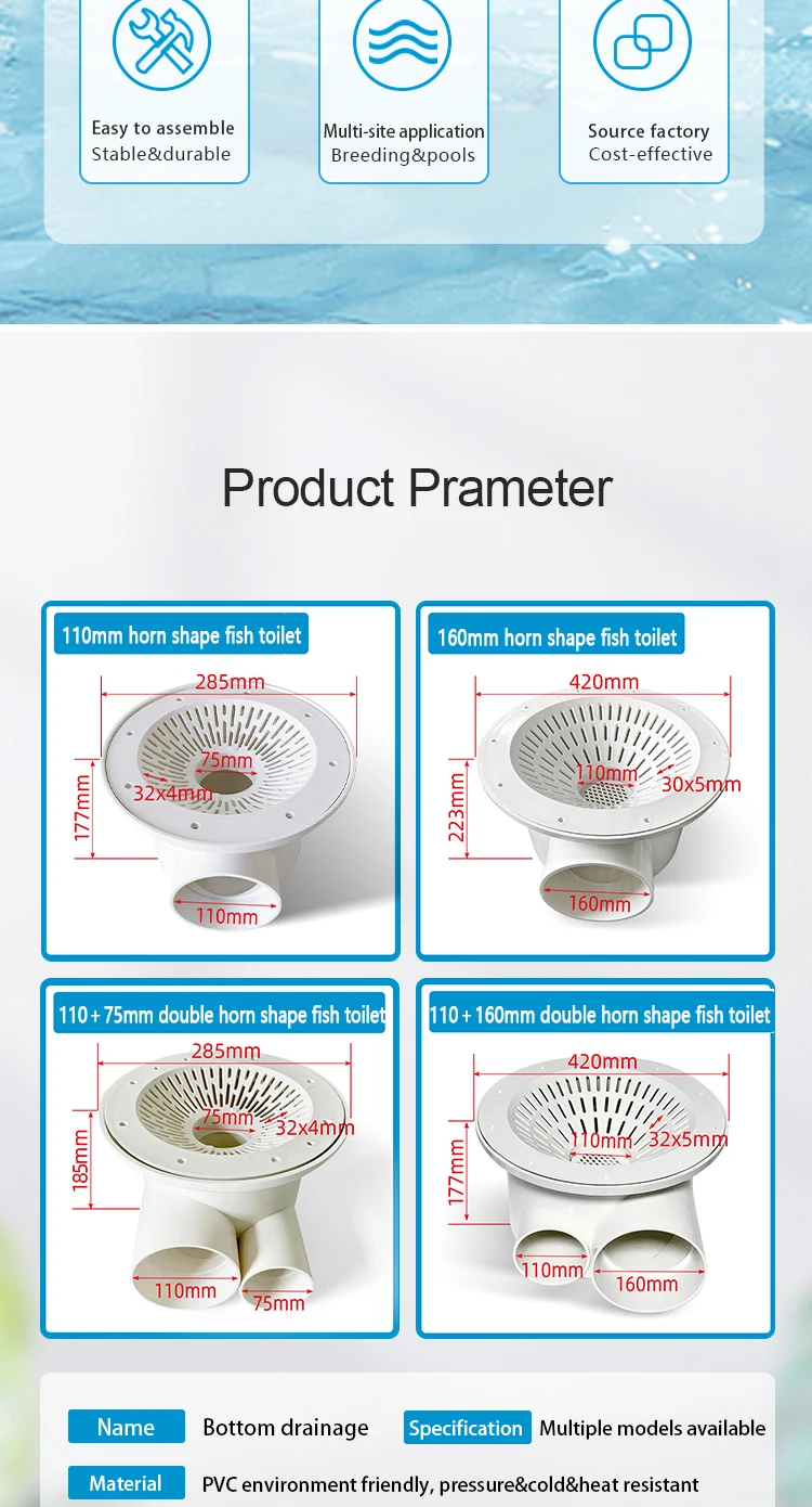 OEM&ODM Professional Drain Device Water Outlet Aquaculture Fish tanks Salt&Fresh Water Accessories Drainage